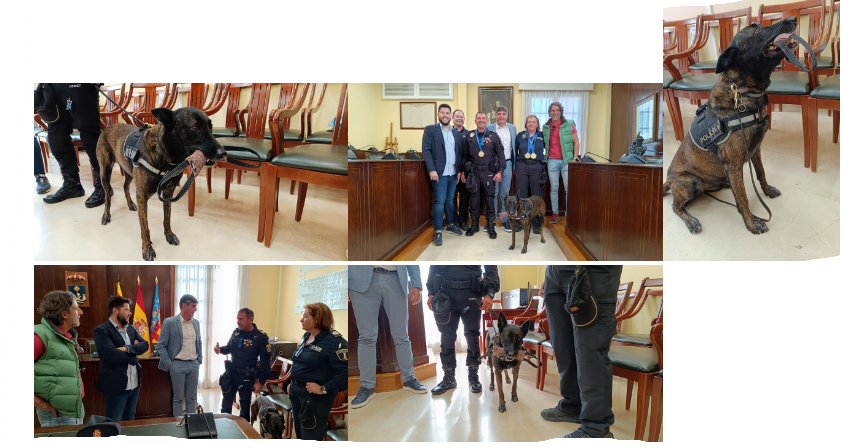 El Alcalde Marcos Zaragoza ha recibido esta mañana a Inga, la agente canina de la Policía Local de Villajoyosa. Inga es una perra adiestrada de 6 años, de raza pastor holandés, que acaba de ganar la novena edición del European Police and Fire Games en la categoría de detección de sustancias estupefacientes. En este torneo internacional, en el que compiten canes de 30 países, Inga realizó diversas pruebas de detección de narcóticos en espacios exteriores e interiores. Este año, al igual que en 2022, también se ha proclamado Campeona de España en la detección de sustancias.