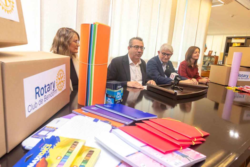 El acto ha tenido lugar en el transcurso de una rueda de prensa en Alcaldía, con la presencia del alcalde, Toni Pérez; la concejal de Educación Maite Moreno; el presidente del Rotary Club de Benidorm, Juan Ángel Ferrer; y la representante de la agrupación local de AMPAs, Pastori Personat.