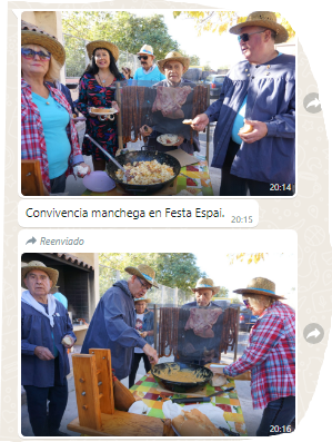 [20:15, 5/11/2023] Palazon: Convivencia manchega en Festa Espai.[20:19, 5/11/2023] Palazon: La Asociación manchega Tramontana ha celebrado la comida de hermandad de otoño, con casi un centenar de socios. Desde la gachas a las 10 de la mañana hasta los tradicionales gazpachos a las 2 de la tarde[20:22, 5/11/2023] Palazon: Y se aprestan para el concierto del miércoles día 8, en el salón de actos del ayuntamiento, donde compartirán escenario con La faltriquera, de Callosa, dentro de la semana cultural de las Fiestas Patronales.