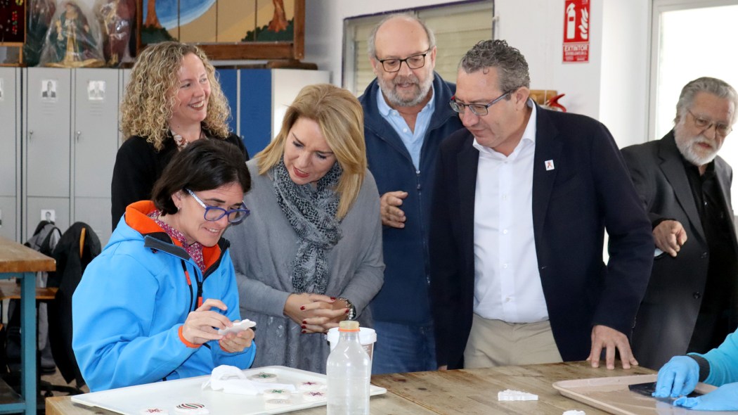 El alcalde, Toni Pérez, ha acompañado hoy a la vicepresidenta segunda y consellera de Servicios Sociales, Igualdad y Vivienda, Susana Camarero, durante su visita al centro Doble Amor, ubicado en el camino que lleva su nombre en la zona de la Huerta. Juntos, y de la mano de la dirección del centro y del presidente de la entidad, José Luis Calvo, han recorrido las instalaciones del Doble Amor, con parada especial en los talleres, donde han conocido los proyectos en los que está trabajando el alumnado centrados en este momento en la Navidad.