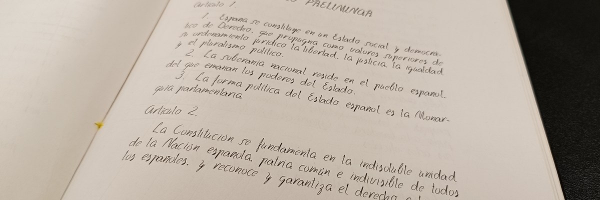La Constitución Española es la norma suprema del ordenamiento jurídico español, a la que están sujetos todos los poderes públicos y ciudadanos de España, desde su entrada en vigor el 29 de diciembre de 1978. Este documento se redactó a partir de las negociaciones y acuerdos entre los diferentes partidos políticos con representación parlamentaria en aquel momento; fue aprobado por las Cortes Generales en sesiones plenarias del Congreso de los Diputados y del Senado celebradas el 31 de octubre de 1978; y ratificada por el pueblo español en referéndum de 6 de diciembre de 1978 y sancionada por S.M. el Rey don Juan Carlos I ante las Cortes el 27 de diciembre del mismo año.