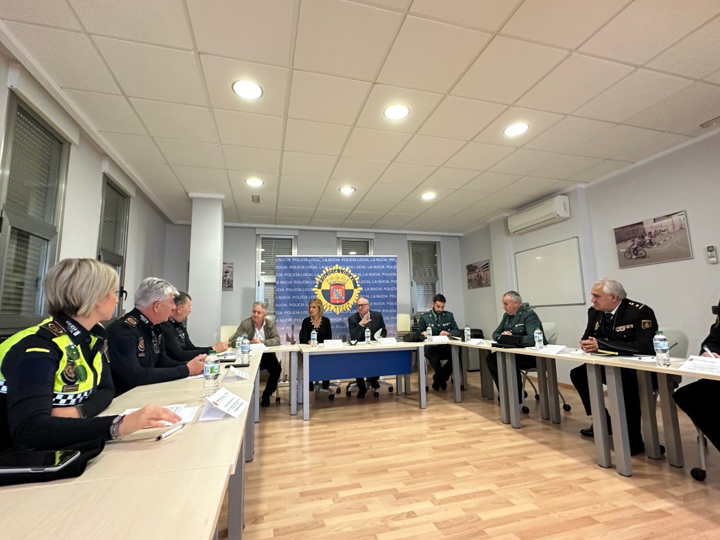 En la Junta Local de Seguridad de La Nucía de 2023 que se ha celebrado en la Central de la Policía Local de La Nucía esta mañana ha contado con la presencia de: Carlos Sánchez Heras, Subdelegado del Gobierno de la provincia de Alicante, Mª Jesús Jumilla, segunda teniente alcalde de La Nucía, Serafín López, concejal Seguridad Ciudadana, Borja Fernández, Capitán de la Compañía de la Guardia Civil de Calpe, Miguel Ángel Muñoz, Teniente Jefe Guardia Civil de Altea, Serafín Fueyo, Inspector Jefe Comisaría Benidorm Policía Nacional, Francisco Javier Tejada, subinspector Policía Autonómica de Alicante, Javier Burrueco, Inspector Jefe Policía Local La Nucía, Salvador Gómez y Esther Botella, responsables Unidad Violencia Género (VIOGEN) Polícía Local y Blas Alós, Oficial de la Policía Local.
