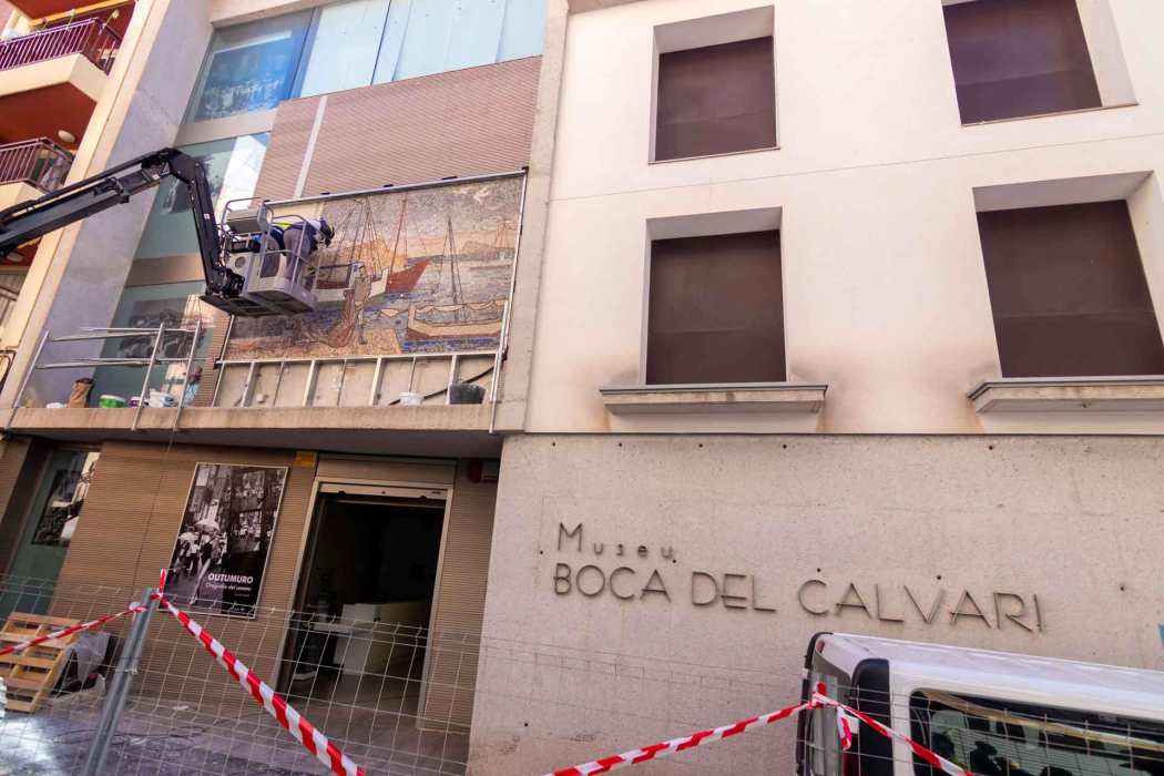 El mural, obra del artista alicantino Gastón Castelló y compuesto por decenas de teselas que forman una superficie total de 15 metros cuadrados, lucía originalmente en una de las paredes del antiguo Mercado Municipal y fue retirado hace ahora dos décadas para la reforma integral de dicho edificio. Pellicer ha recordado que durante todo este tiempo el mosaico “estuvo guardado en cajas en el Archivo Municipal, pero creíamos que lo idóneo era que volviese a estar a la vista de todos, de ahí nuestro empeño en restaurarlo y volverlo a exponer al público. Y qué mejor lugar para ello –ha continuado la edil– que en el Boca del Calvari, a muy pocos metros de su ubicación original y en la fachada principal de este museo”, que da a la calle de Tomás Ortuño.