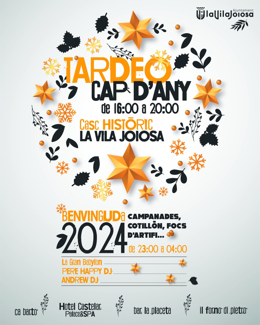Para finalizar el año, se celebrará una fiesta tardeo desde las 16 hasta las 20 horas, que contará con la actuación en directo del grupo musical La Gran Babylon y las sesiones del los djs Pere Happy y Andrew Dj. Además, tanto por la tarde como por la noche, habrá servicio de barra a cargo de los establecimientos ubicados en la plaza.