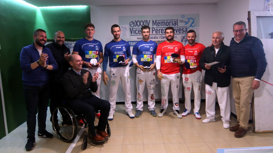 El alcalde de Benidorm, Toni Pérez, ha asistido a esta cita con el deporte autóctono junto al edil de Deportes, Javier Jordá, y otros miembros del gobierno local. Además de seguir la partida, han acompañado a Vicente Pérez Agulló, hijo de Vicente Pérez Devesa, y a otros miembros de la familia tanto en la ceremonia inaugural de la final como en la entrega de premios posterior a la misma.