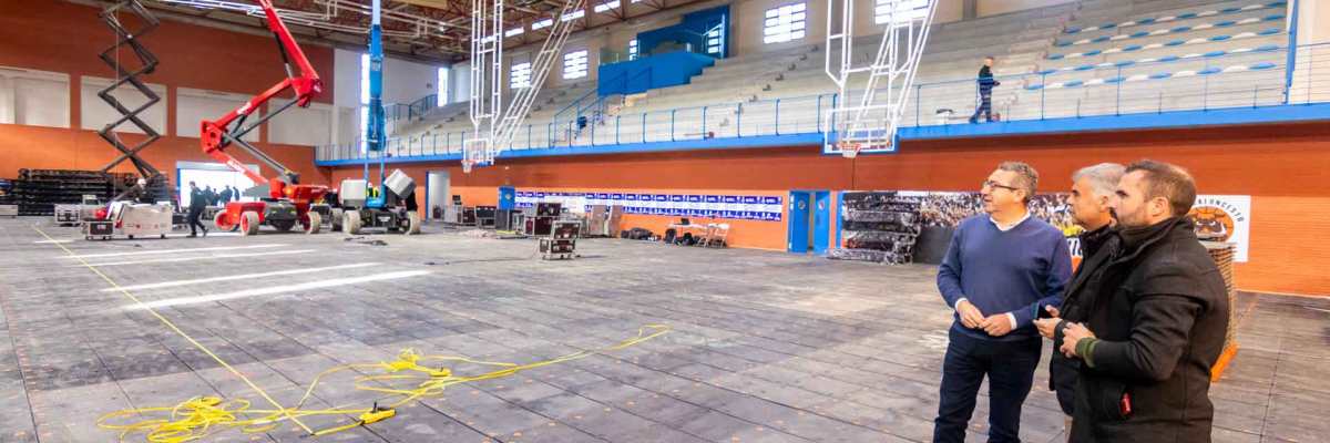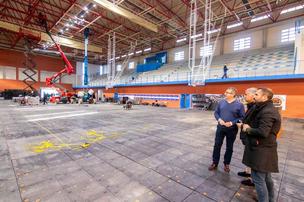 El alcalde de Benidorm, Toni Pérez, ha visitado este lunes el recinto deportivo para comprobar ‘in situ’ el avance de estos trabajos, acompañado de los ediles de Festivales y Eventos, Jesús Carrobles, y de Deportes, Javier Jordá. Allí, la delegación municipal ha conocido los plazos que se manejan para la transformación de esta infraestructura, unos trabajos que se prolongarán durante unos veinte días más y en los que trabajan unos 150 de operarios de RTVE, que se incrementarán hasta los 300 a partir de la semana próxima.