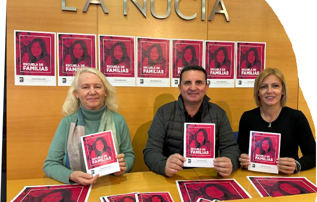 La presentación de esta “III Escuela de Familias” de La Nucía contó con la presencia de Mª Jesús Jumilla, concejala de Juventud, Beatriz Pérez-Hickman, concejala de Bienestar Social y Bernabé Cano, alcalde de La Nucía.