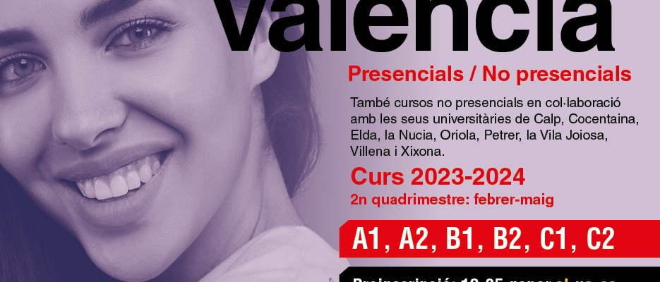 El próximo lunes 19 de enero se abrirá el plazo de preinscripciones para el “Curs Superior de Valencià” (C2) de la Seu de La Nucía de la Universidad de Alicante. Es la duodécima edición de este curso que se desarrollará de febrero a mayo de 2024, en formato on-line. Las plazas son limitadas. Todas las personas interesadas deben inscribirse en https://sl.ua.es/va/