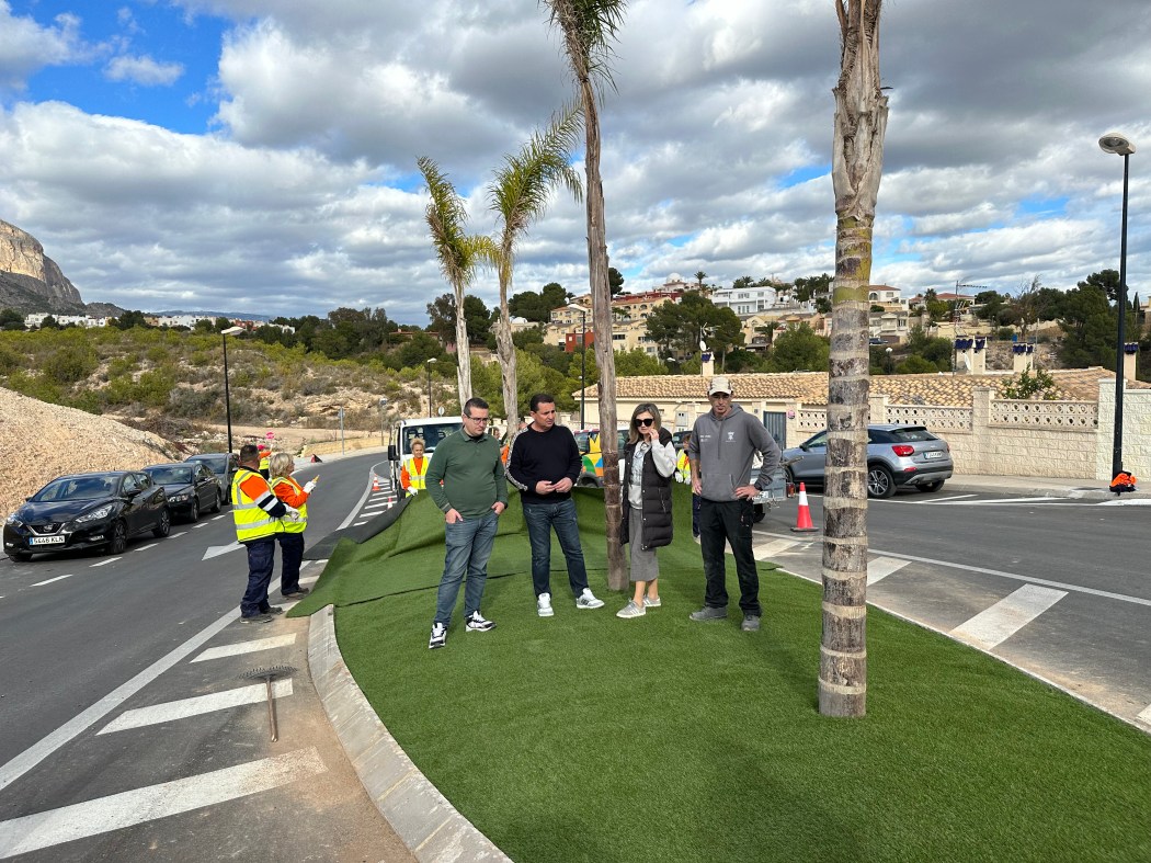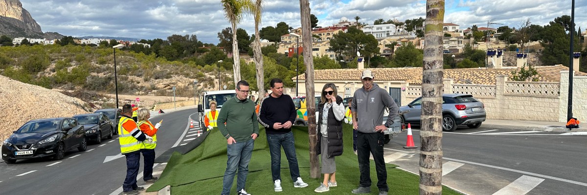 Estas obras se iniciaron en 2023 y están finalizando ahora en enero de 2024 con la actuación del Taller de Empleo que está acabando el ajardinamiento de la nueva isleta con la instalación del césped artificial. Pepe Cano, concejal de Servicios Técnicos y Bernabé Cano, alcalde de La Nucía, visitaron estas obras de mejora de los accesos de la Urbanización Montecasino.