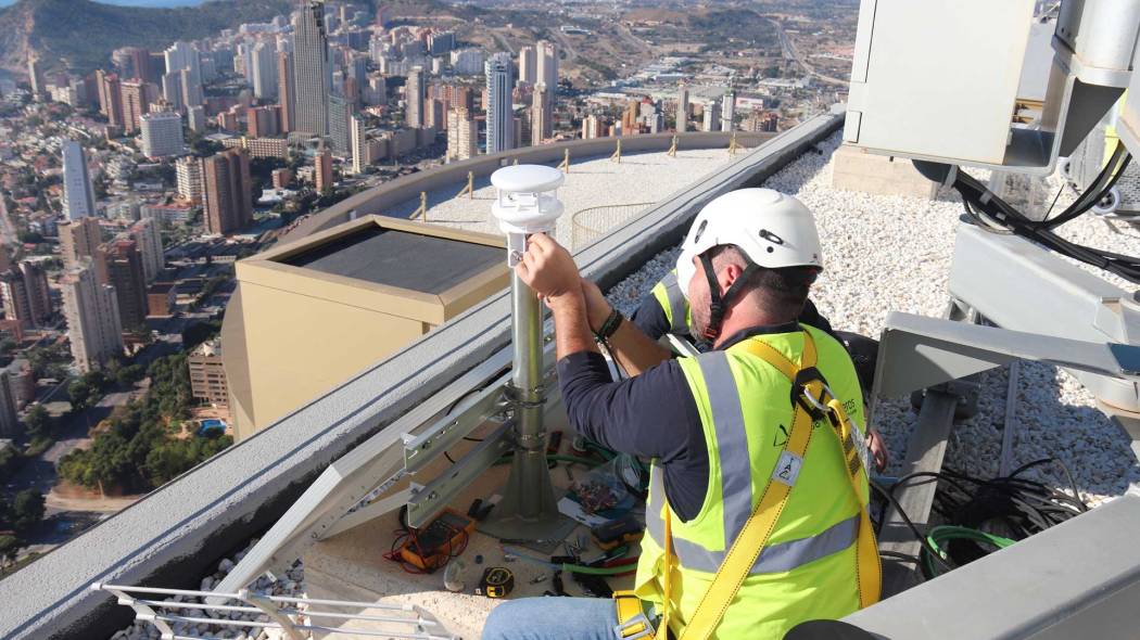 El Ayuntamiento de Benidorm ha instalado un anemómetro en la azotea del edificio InTempo, el rascacielos más alto de la ciudad, con el objetivo de averiguar la viabilidad de que se construyan edificios autosuficientes en materia de energía. No es el primer dispositivo que se instala de estas características, aunque sí el que lo hace a más altura, al sobrepasar los algo más de 200 metros sobre el mar que tiene esta construcción.