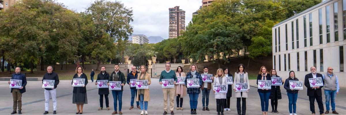 El Consistorio ha convocado una concentración silenciosa en la plaza del Ayuntamiento para expresar su rechazo por este crimen, una concentración que ha estado encabezada por el alcalde de Benidorm, Toni Pérez, la edil de Igualdad, Ángela Zaragozí, y numerosos miembros de la Corporación Municipal.