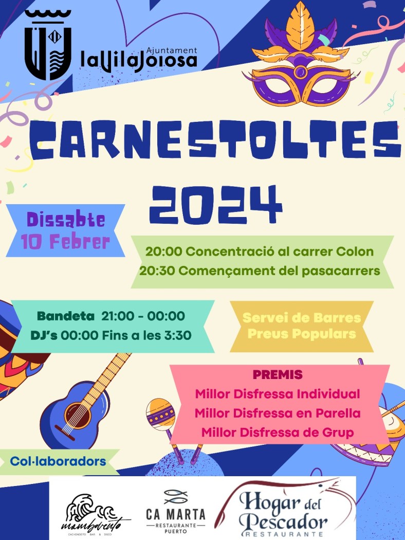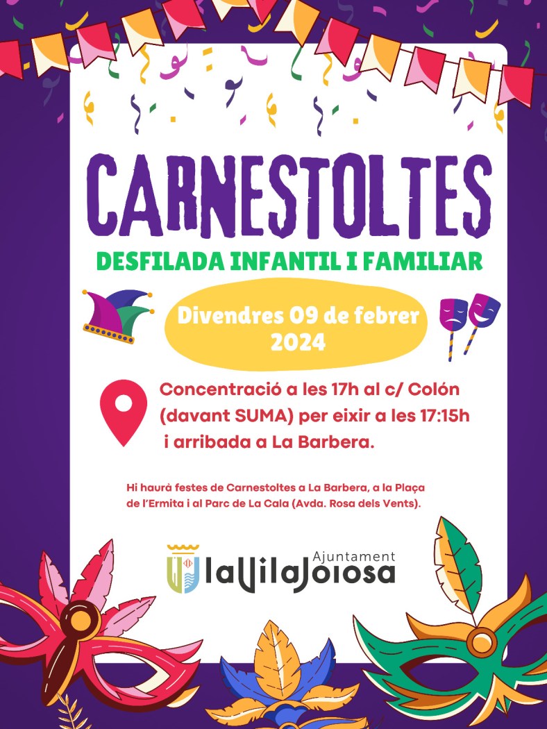 Las concejalías de Juventud y de Fiestas del Ayuntamiento de Villajoyosa están preparando una fiesta popular para celebrar el Carnaval el próximo sábado 10 de febrero. La noche de disfraces arrancará a las 20.30 horas con un desfile que recorrerá la calle Colón, desde la intersección con la calle Pizarro y llegará hasta la finca la Barbera, donde se disfrutará de una divertida fiesta con banda de música, djs y servicio de barras hasta las 3.30 horas de la madrugada.