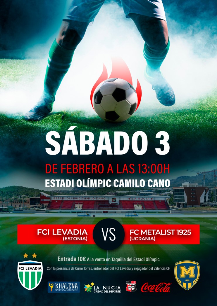 Este partido internacional enfrentará al FCI Levadia de Estonia y al FC Metalist de Ucrania Ambos equipos compiten en la máxima categoría de la liga de sus países. El enfrentamiento amistoso entra ambos clubes será el sábado 3 de febrero a las 13 horas en el Estadi Olímpic Camilo Cano.