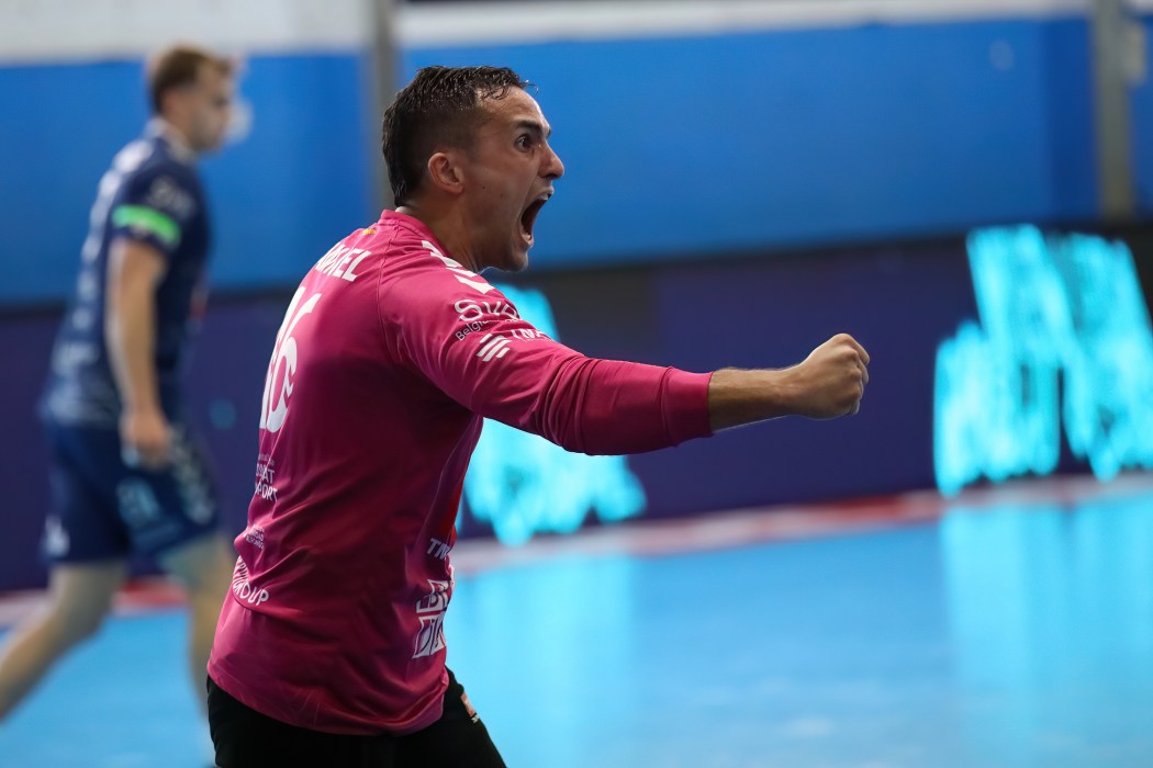 Pese a la necesidad de tener que jugar en la pista del Colegio San Agustín de Alicante debido al Benidorm Fest, las ganas de volver a la competición se podían ver desde el primer minuto en la cancha y pronto los de Sergio Carballeira se ponían por delante pese a la buena actuación del portero visitante, el esloveno Gercar que debutaba en la competición. Sin embargo, la verdadera estrella de la primera mitad emergería en la portería local, con un Samuel Ibáñez soberbio que empezó a desquiciar a los visitantes y se convirtió en un muro difícil de penetrar. Con todo esto se llegó al descanso con un 13 a 8.