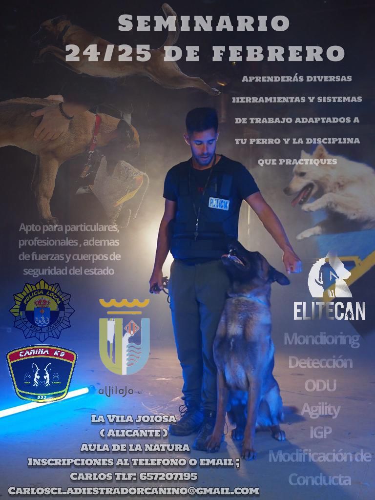 El concejal de Seguridad Ciudadana, Jaime Santamaría, explica que “en este seminario se conocerá la psicología del aprendizaje del perro, cómo son sus conductas dependiendo del momento y cómo se le deben comunicar los hechos. Además, se aprenderán herramientas de trabajo con el perro en base a la tarea que este vaya a realizar en un momento determinado.”