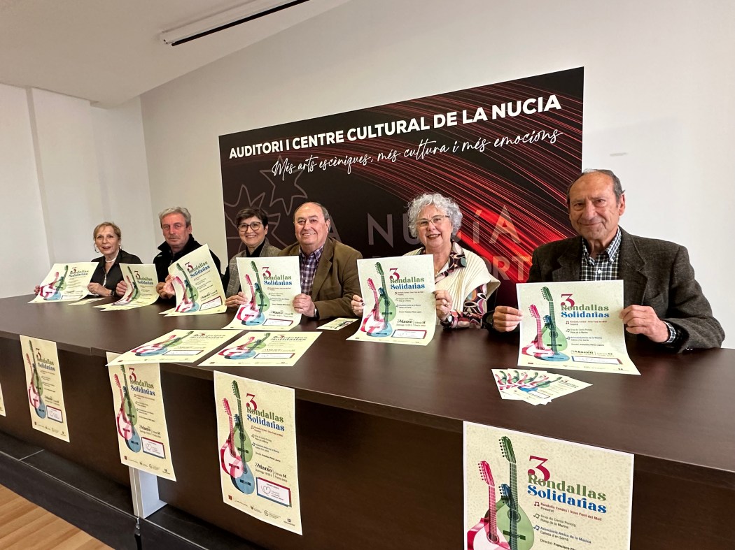 L’Auditori de La Nucía acoge el concierto “3 Rondallas Solidarias” este domingo 3 de marzo a las 19 horas, con la participación las rondallas de Callosa d’en Sarrià, Finestrat y Polop. Es una actuación solidaria a beneficio de la Junta Local de La Nucía de la Asociación contra el Cáncer de La Nucía. Las entradas están a la venta en las taquillas de l’Auditori y a través de la plataforma instanticket: