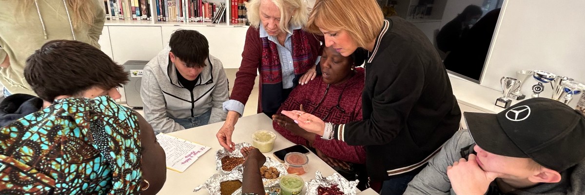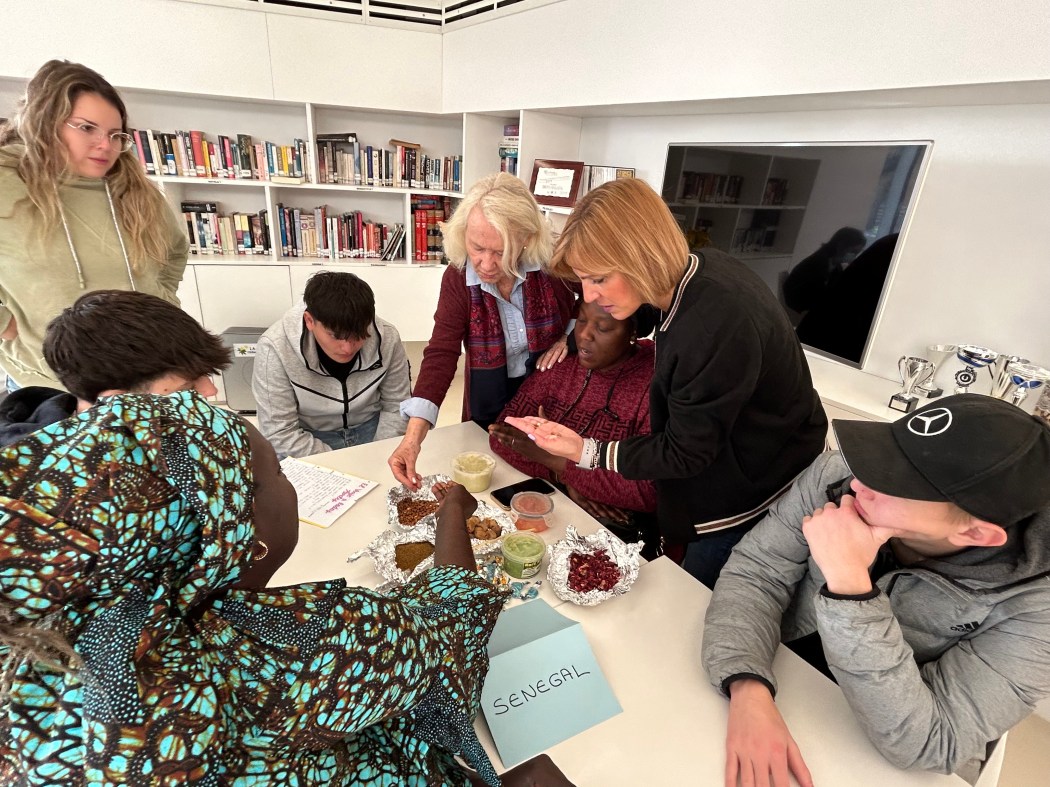 Esta mañana se ha realizado la segunda sesión del taller intergeneracional “El viatge a totes parts” en el que el alumnado del Instituto La Nucía está conociendo de mano de los usuarios de diferentes nacionalidades, las diferentes costumbres, tradiciones y gastronomía de diversos países, dentro de una actividad organizada por Instituto de La Nucía y la concejalía de Tercera Edad. Esta sesión ha contado con la colaboración de colaboradoras del grupo Pangea, que han mostrado a alumnas y alumnos características de sus países de procedencia: Marruecos, Argelia, Perú, Senegal.