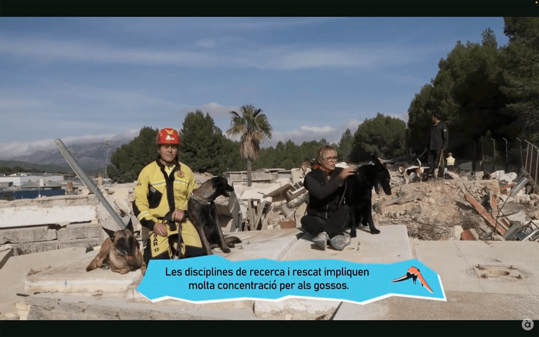 En el reportaje aparecen diferentes voluntarios y voluntarias de la ONG USAR 13 en el Campo de Entrenamiento de Perros de Rescate contando sus experiencias en el rescate de los terremotos de Turquía e inundaciones de Libia. Fernando García trabaja con sus perras “Zara” y “Kora”. También participa en el reportaje Sergio Pérez con su can “Titán” y Rita Orozco con “Tata”. Fuera del recinto Elena García con su perro “Thor” realizan un simulacro de rastreo de una persona desaparecida.