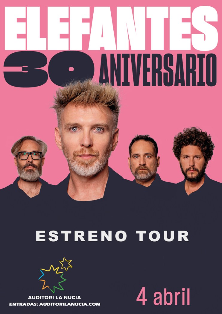 La Gira de 30 aniversario de Elefantes se estrena en La Nucía, en el escenario de l´Auditori, el 4 de abril. En ella Elefantes recorrerá los mejores teatros, auditorios y festivales de España y México y en la que habrá sorpresas y colaboraciones con otros artistas junto a los que repasaran las canciones más significativas de su carrera.