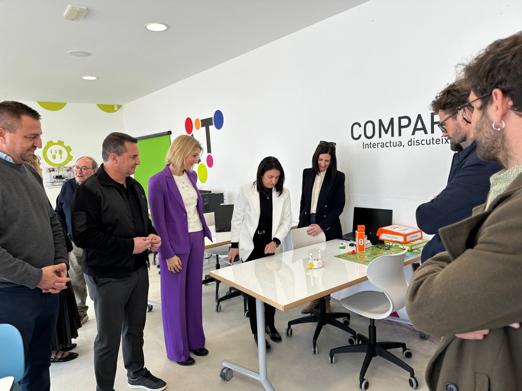 “El aula transformadora es una oportunidad para el profesorado de trabajar a través de metodologías activas entre el alumnado y conseguir una un a formación mas competencial. En el aula tenemos material tecnológico junto a una diversidad de espacios flexibles que permiten conseguir ese trabajo competencial de alumnado. Esta aula dispone de mobiliario flexible, que permite diferentes disposiciones en el espacio, tiene una pantalla interactiva, impresora 3D, material de robótica y otros derivados tecnológicos que permite trabajar contenidos del adaptados al futuro de la educación”, comentó Nuria Soler, Nuria Soler Martínez, subdirectora general de Formación del Profesorado