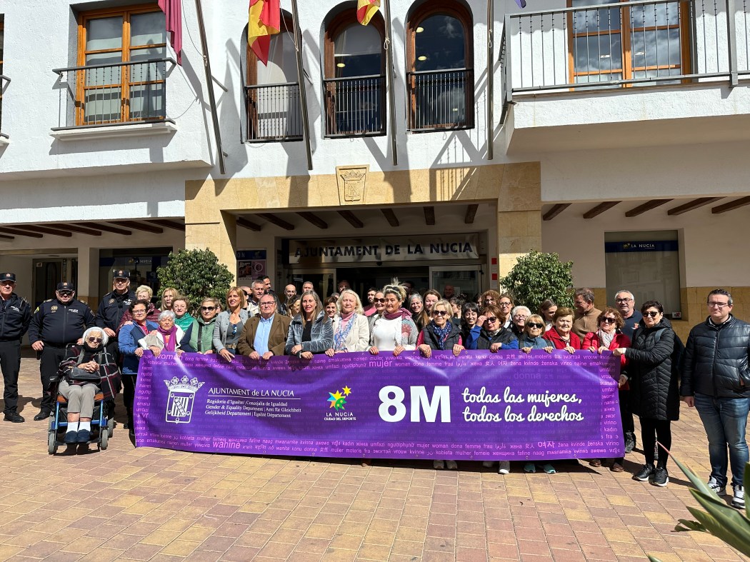 El Ayuntamiento de La Nucía ha conmemorado hoy el “8 de Marzo, Día Internacional de la Mujer”, con un pequeño acto y colocando una pancarta en el balcón de la casa consistorial con el lema “8M Todas las Mujeres, Todos los derechos”. Además esta semana los edificios de La Nucía y algunas fuentes tiñen su iluminación de “violeta” para recordar el “8 de Marzo y la necesidad de construir entre todas y todos una sociedad más justa e igualitaria durante todos estos días”.