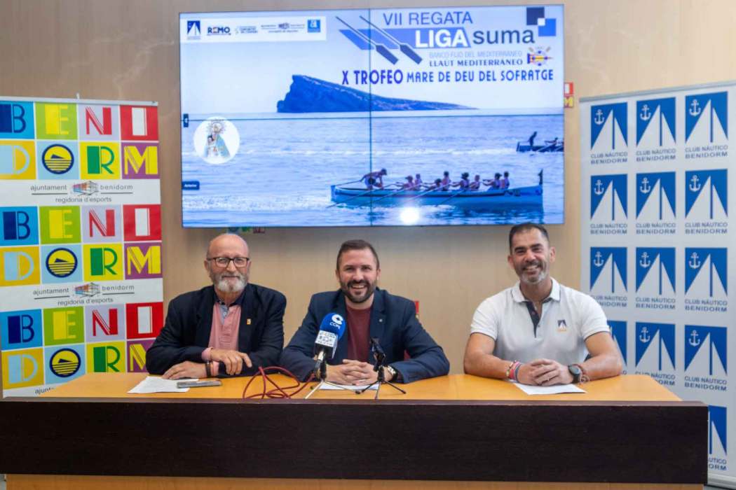 El próximo domingo, 17 de marzo, a partir de las 9.00 de la mañana, las aguas de la Bahía de Benidorm acogerán la séptima edición de la Regata de la Liga Suma Llaüt del Mediterráneo de Banco Fijo, décimo trofeo ‘Mare de Déu del Sofratge’, organizado por la Federación de Remo de la Comunitat Valenciana y el Club Náutico de Benidorm (CNB) con la colaboración de la Concejalía de Deportes. Así lo han anunciado en rueda de prensa el concejal del área, Javier Jordá, el delegado de Remo del club y su presidente, Jaume Samper.