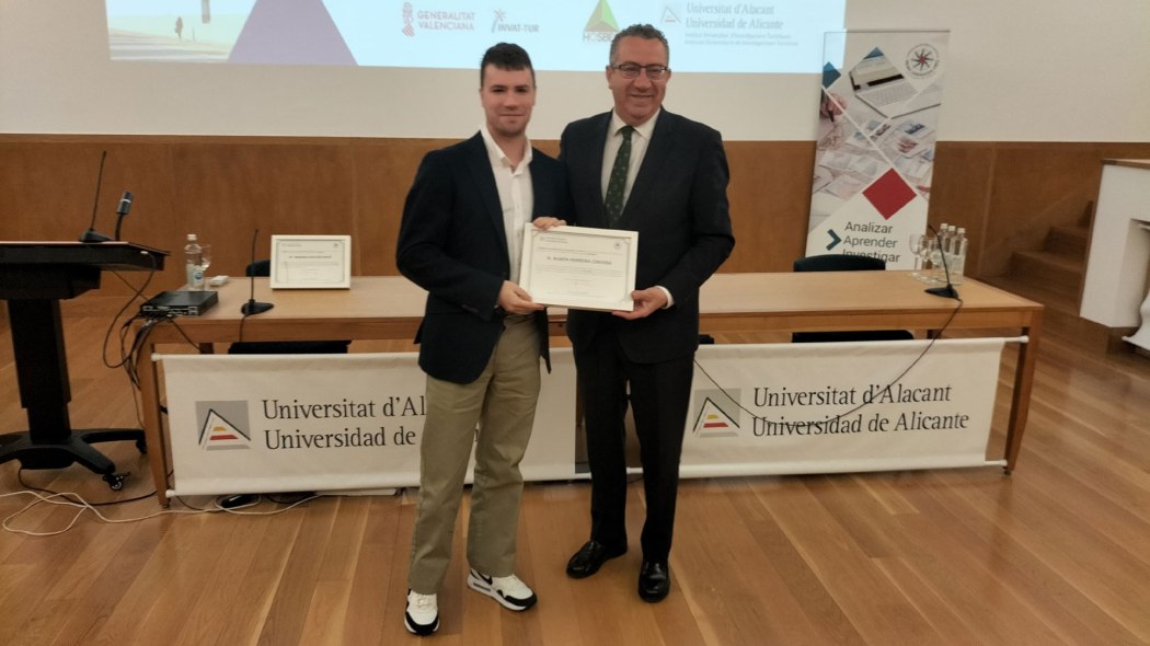 En la categoría Trabajo Fin de Grado (TFG), el primer premio ha correspondido a Rubén Herrera Cervera, del Grado en Ingeniería Multimedia de la Universidad de Alicante (UA), por su trabajo ‘Diseño y desarrollo de una aplicación para promover rutas turísticas de películas y series’. El segundo premio ha sido para Elsa Lauri Castelló, del Grado en Turismo de la UA, por su trabajo titulado ‘El valle del juguete y propuesta de desarrollo turístico’, dirigido por Mari Paz Such. El tercer premio ha recaído en Andrea maría Andreu Aguilera, también del Grado en Turismo de la UA, por el trabajo titulado ‘El habla como recurso turístico: una propuesta para Benejúzar y la Vega Baja del Segura’, que fue dirigido por Xavier Amat.