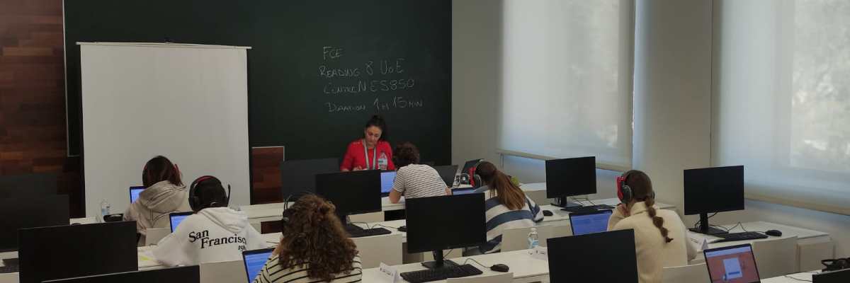 Seis alumnas, se examinaron el pasado viernes 15 de marzo en el nivel FCE (B2) en todas áreas de inglés: lectura, escritura, escuchar y conversación. Excepto la parte de conversación, el resto de áreas del examen fueron realizadas por ordenador en el aula de informática de la Seu Universitària. Se trataba de la primera ocasión que los exámenes Cambridge se realizaban en formato informatizado.