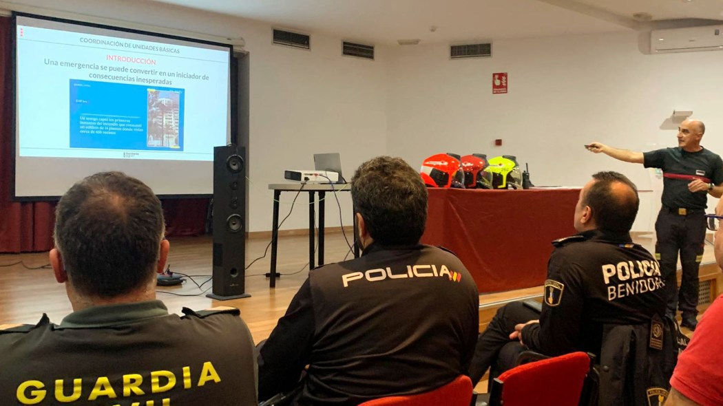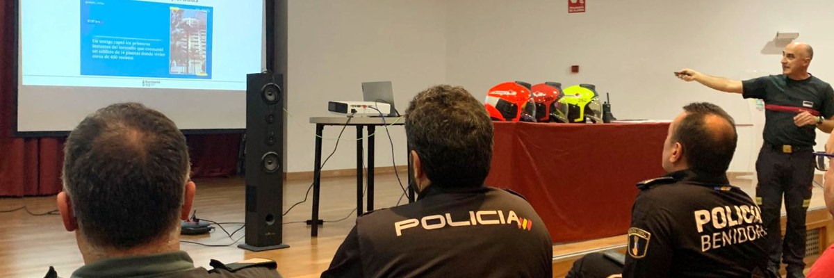 Un centenar de agentes de la Policía Local, Policía Nacional y Guardia Civil han participado este lunes en una jornada formativa organizada por la Policía Local de Benidorm con el objetivo de actualizar las pautas de actuación ante un incendio. La sesión, denominada ‘Actuación conjunta ante incendios’, ha sido impartida por personal del Consorcio Provincial de Bomberos de Alicante y se ha desarrollado en el Centro Social Llorca Linares.