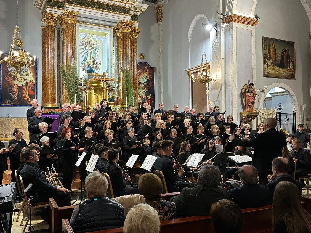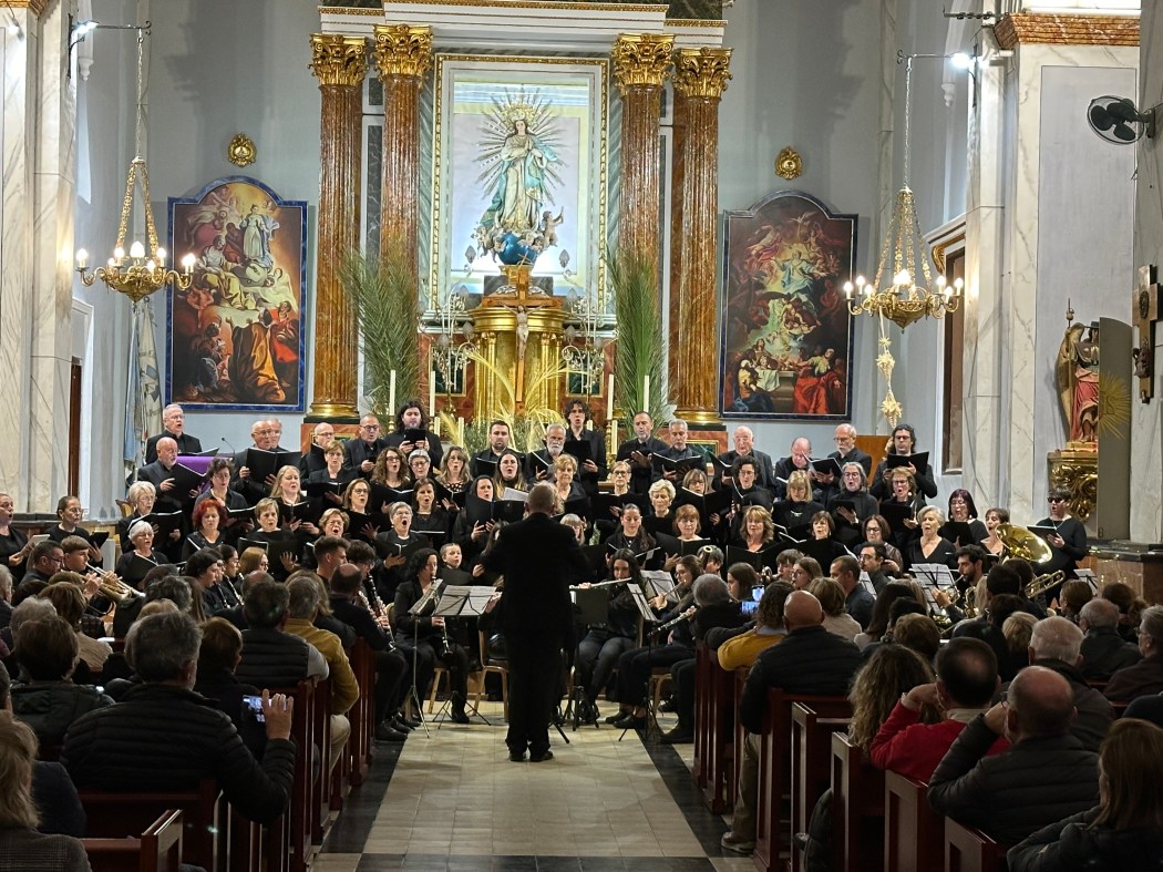 La Nucía celebra un 75 coristas y 25 músicos, en el marco incomparable de la Iglesia Parroquial de la Purísima Concepción de La Nucía. Anteriormente este concierto se celebró en la Iglesia de San Jaime de Benidorm, el pasado sábado 23 de marzo.