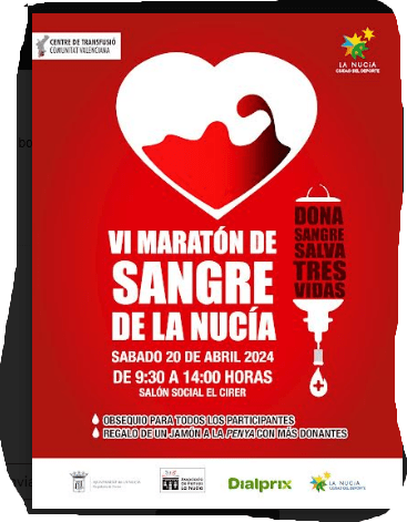 El VI Maratón de Donación de Sangre de La Nucía se desarrollará el sábado 20 de abril de 9,30 a 14 horas en el Salón Social El Cirer de La Nucía. El objetivo de esta iniciativa es captar el mayor número de “donaciones” dada la gran “demanda de sangre” de los hospitales de la provincia. Este VI Maratón de Sangre está abierto a toda la sociedad, pero para incentivar la participación se dará un jamón a la penya festera, que más donantes presente.