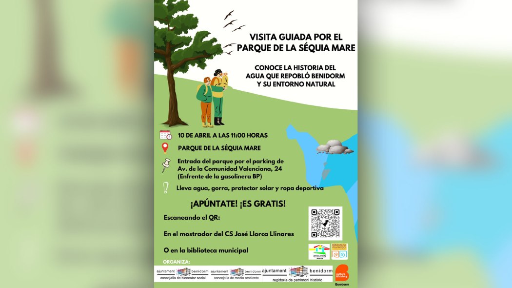 Las concejalías de Bienestar Social, Medio Ambiente y Patrimonio Histórico han organizado para hoy miércoles 10 de abril una actividad al aire libre gratuita y abierta a todos los públicos. Se trata de una visita guiada al parque de la Séquia Mare que comenzará a las 11 horas.