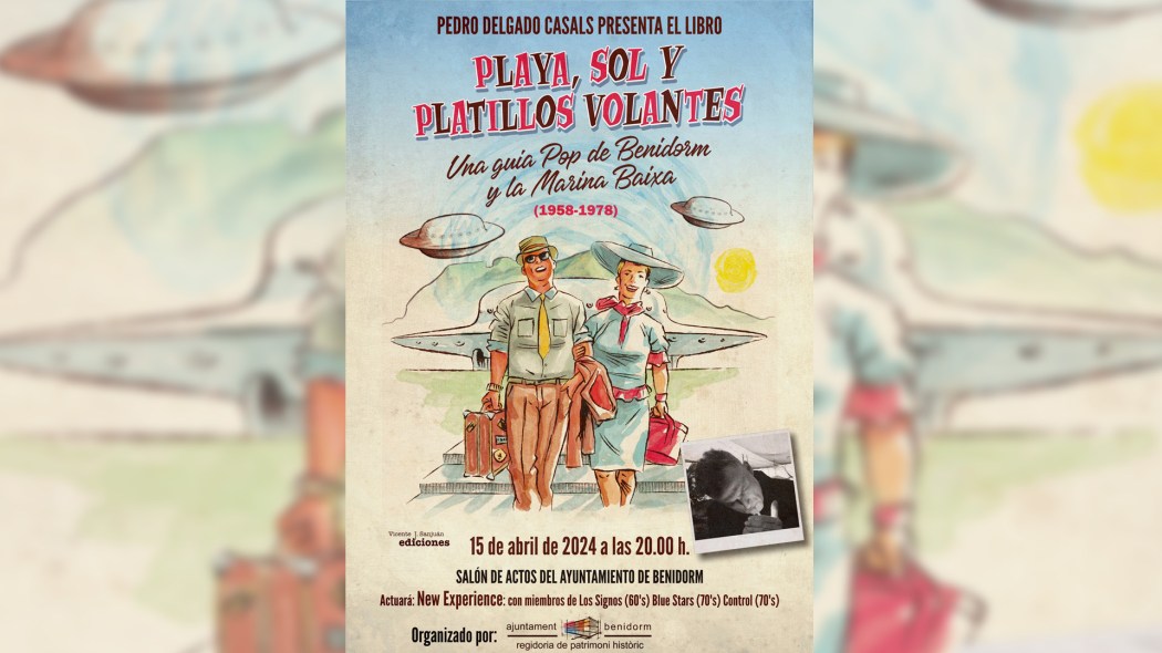 El Salón de Actos del Ayuntamiento de Benidorm acoge el próximo lunes, 15 de abril, a las 20.00 horas, la presentación del libro ‘Playa, sol y platillos volantes. Una guía Pop de de Benidorm y la Marina Baixa (1958-1978)’, un libro que revisita las míticas décadas en las que la ciudad fue todo un referente nacional de ocio nocturno. Firmado por el “asturiano benidormense” Pedro Delgado, la obra está editada por Vicente Sanjuán Ediciones y cuenta con el patrocinio de la Concejalía de Patrimonio Histórico y Cultural que dirige Ana Pellicer.