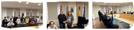 En la última parada en el edificio consistorial tras visitar todas las plantas y los diferentes departamentos los alumnos y alumnas visitan en “Salón de Plenos” del Ayuntamiento, donde fueron recibidos por Pedro Lloret, primer teniente alcalde de La Nucía quién les han explicado el funcionamiento de los plenos municipales.