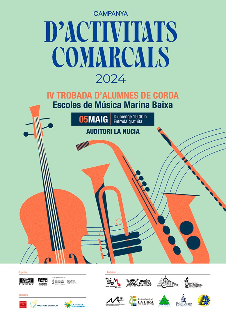 Esta “IV Trobada Alumnes de Corda” forma parte de las actividades comarcales 2024, organizadas desde la Federació de Societats Musicals de la Comunitat Valenciana.