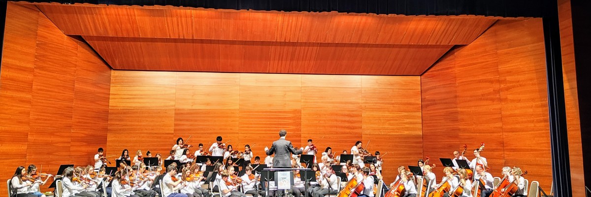 En este concierto de la “IV Trobada Alumnes de Corda” participaron 70 alumnos de cuerda de las escuelas musicales de la Marina Baixa. Alumnos de diferentes edades, niños y niñas, jóvenes y adultos, con sus violas, violines, contrabajos, chelos….etc. Reseñar que en algunos temas contaron con el apoyo de varios profesores de cuerda. El concierto fue dirigido por Eliseo Cruz Minguélez, director de la Banda Jove de la Unió Musical de La Nucía