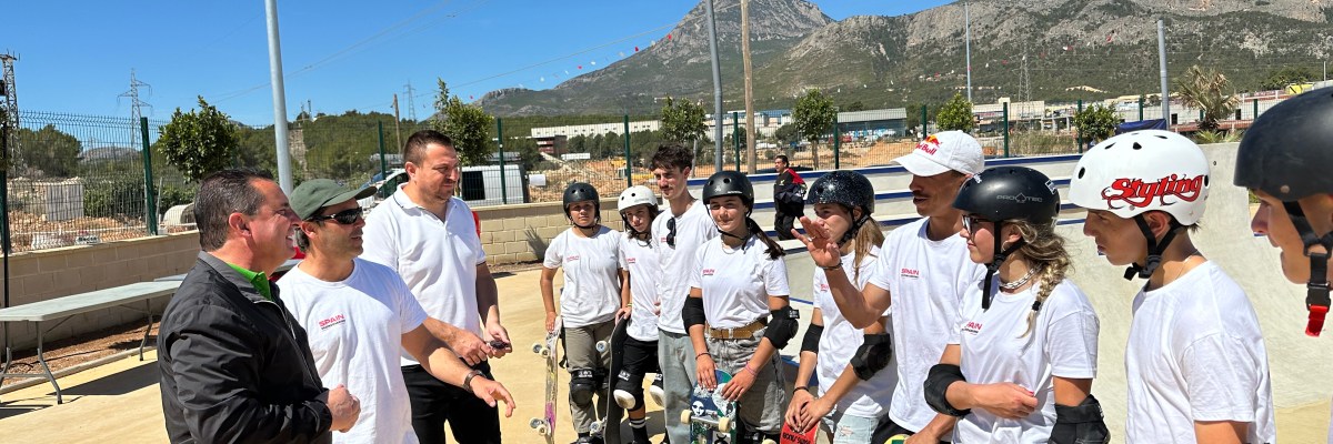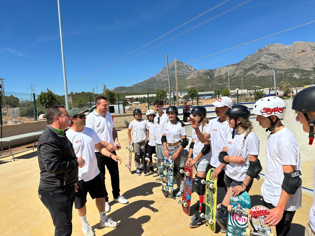 Sergio Villalba, concejal de Deportes y Bernabé Cano, alcalde de La Nucía, visitaron a la selección española, en su concentración en el nuevo Skate Park de La Nucía, que se ha convertido en “Centro de Tecnificación Nacional de Skate” de la Real Federación Española de Patinaje.