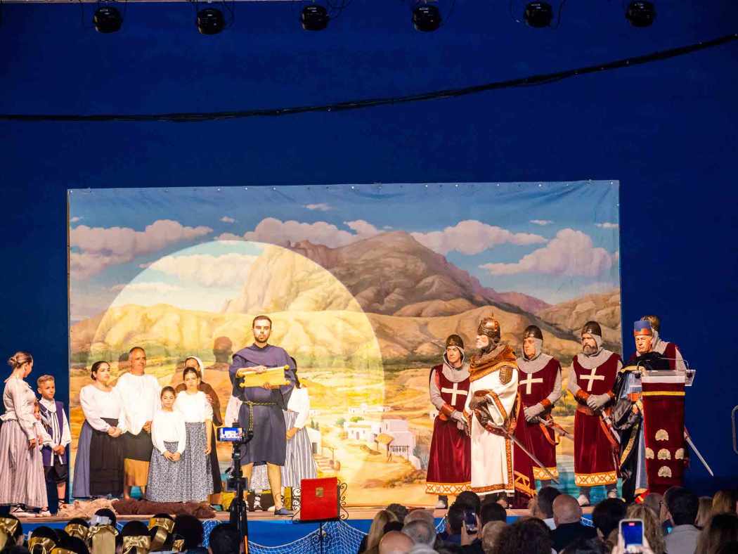A las 21.00 h daba comienzo la representación que se sustenta en un relato de Pasqual Almiñana, presente la escenificación, que visibilizó cómo el almirante Bernat de Sarrià dio carta de naturaleza a Benidorm siete siglos atrás.