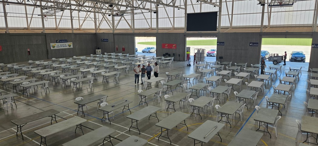 Esta mañana Pedro Lloret, primer teniente alcalde y Sergio Villalba, concejal de Educación han visitado la instalación para ver los preparativos en el Pabellón Muixara. El Ayuntamiento de La Nucía ha cedido de forma gratuita esta instalación deportiva, para que puedan examinarse de Selectividad los alumnos del Instituto de La Nucía y de los Institutos de Benidorm, demostrando el “compromiso de La Nucía con la educación”.