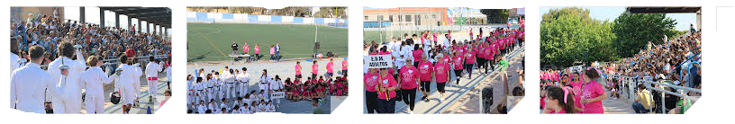 El alumnado de patinaje, psicomotricidad, judo, multideporte, deporte adaptado, atletismo, gimnasia rítmica, minitenis, tenis, kárate, esgrima, zumba kids, zumba, baloncesto, voleibol y las Escuelas de Adultos (para mayores de 65 años, que asisten a clases de yoga, pilates, gap, fitness, zumba y entrenamiento funcional) participaron en un desfile en la pista de atletismo, ante una grada abarrotadaS