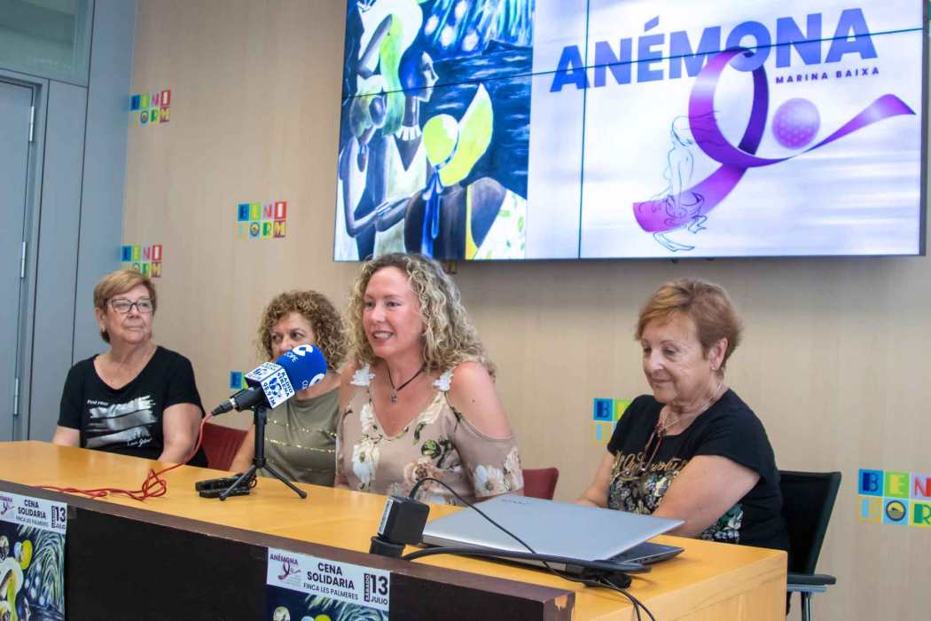 Anémona, Grupo de autoayuda de mujeres con cáncer de mama, celebrará el próximo 13 de julio, sábado, su tradicional cena solidaria a partir de las 21.30 horas en la finca Les Palmeres. Los tickets para el evento ya están a la venta en la sede de la organización, en la calle La Biga número 14, según han informado hoy la concejala de Igualdad, Ángela Zaragozí, y la presidenta de Anémona, María Botella, en rueda de prensa.