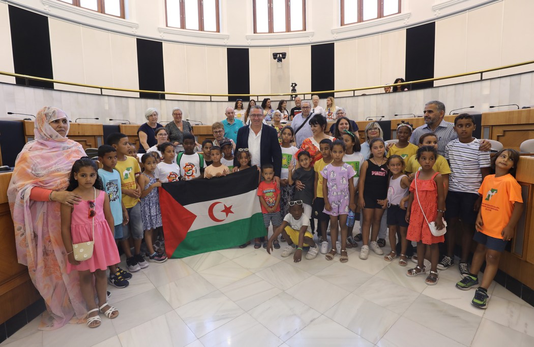 El presidente de la Diputación de Alicante, Toni Pérez, ha recibido esta mañana en el Palacio Provincial la visita de los niños y niñas participantes en el programa solidario ‘Vacaciones en paz’, gestionado por la Coordinadora de Asociaciones de Solidaridad del pueblo Saharaui y encaminado a ofrecer a los menores saharauis una experiencia enriquecedora con familias de acogida alicantinas. El presidente ha destacado el respaldo de la institución provincial que “mantiene firme su compromiso con la cooperación al desarrollo de los países desfavorecidos y, a través de la Unidad de Cooperación y Voluntariado del Área de Bienestar Social, apoya desde hace dos décadas los proyectos del colectivo de Asociaciones Solidarias con el pueblo saharaui, que son un ejemplo de solidaridad y colaboración entre los pueblos”. La recepción ha contado también con la presencia de la diputada de Bienestar Social, Loreto Serrano, el delegado Saharaui para Alicante, Lehbid Ali Salem, y la presidenta de la asociación solidaria, Ángela Carrillo, quienes han invitado a reflexionar sobre la importancia de la paz y el diálogo y la necesidad de poner fin a un conflicto que ha cumplido ya 48 años. Las familias de acogida alicantinas brindan a estos 46 pequeños – de entre 8 y 9 años- la oportunidad de disfrutar de unas vacaciones en un entorno diferente, acceder a revisiones médicas y vivir experiencias culturales y educativas que contribuyen a su desarrollo personal.