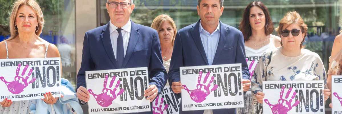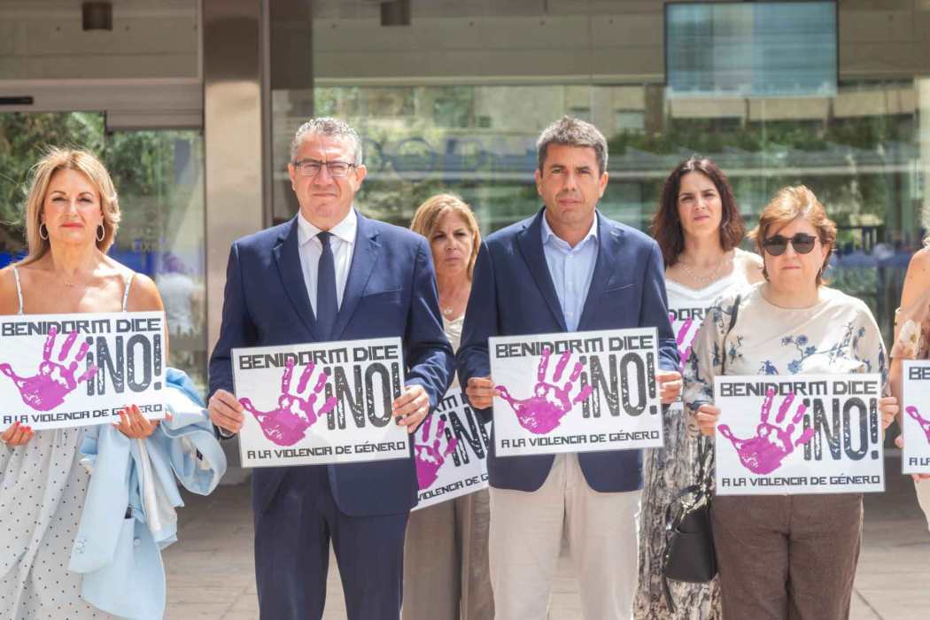 El Ayuntamiento de Benidorm ha guardado este lunes un minuto de silencio para condenar el último caso de violencia contra la mujer confirmado en las últimas horas en nuestro país y que ha acabado con la vida de una mujer de 67 años de edad en la localidad alicantina de Villena. La concentración silenciosa ha tenido lugar en la puerta del Ayuntamiento y ha estado encabezada por el alcalde de la ciudad, Toni Pérez. A ella también se han unido el presidente de la Generalitat Valenciana, Carlos Mazón; la consellera de Innovación, Industria, Comercio y Turismo, Nuria Montes; la presidenta de RTVE, Concepción Cascajosa; y el director de Estudios y Medios Técnicos de este ente, José Luis Muñiz, que junto a otros miembros de la Corporación municipal han querido sumarse a esta concentración de condena antes de participar en otro acto programado en la ciudad.