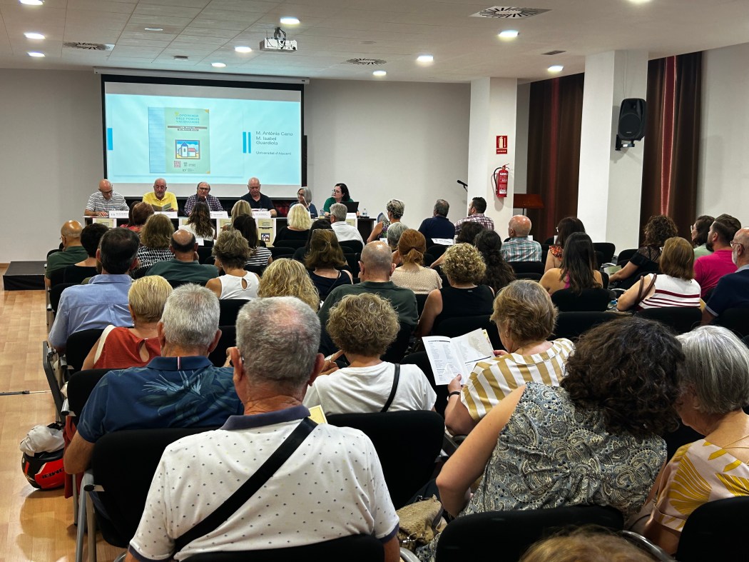 En primer lugar, en la Sala Ponent de l’Auditori se realizó la presentación del catálogo de “Toponimia dels Pobles Valencians. La Nucia”, editado y publicado por la Acadèmia Valenciana de la Llengua. En esta presentación participaron las profesoras Maria Antònia Cano y Maria Isabel Guardiola, que han sido las que han realizado el trabajo de campo de este catálogo que recoge la denominación correcta de todas las partidas rurales, accidentes geográficos, ríos, montículos de La Nucía, así como su ubicación en el mapa. En la presentación del acto intervinieron Josep Martines y Jordi Colomina, académics de la Acadèmia Valenciana de la Llengua (AVL), Vicent Martines, director de la Seu Universitària de La Nucia y Pedro Lloret, primer teniente alcalde de La Nucía.