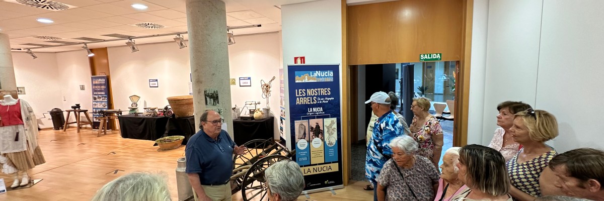 La primera visita guiada a la exposición histórica “Les Nostres Arrels- De An- Nuzayka a La Nucia” ha funcionado muy bien y ha sido muy interactiva. Los asistentes han formulado diferentes preguntas al guía de la exposición sobre el origen del nombre de La Nucía, su independencia de la baronía de Polop, la emigración nuciera a Argel, la evolución de pueblo agrícola a pueblo de servicios e industrial..etc. Junto al grupo de la tercera Edad también ha visitado la muestra Beatriz Pérez-Hickman, concejala de Tercera Edad de la Nucía