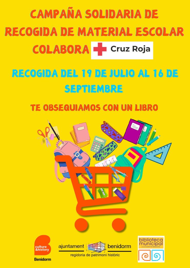 La red de bibliotecas de Benidorm ha puesto en marcha un año más de la mano de Cruz Roja una campaña de recogida de material escolar, que se prolongará hasta el próximo 16 de septiembre. En esta edición se ha ampliado el plazo de vigencia de esta acción solidaria para facilitar la colaboración.