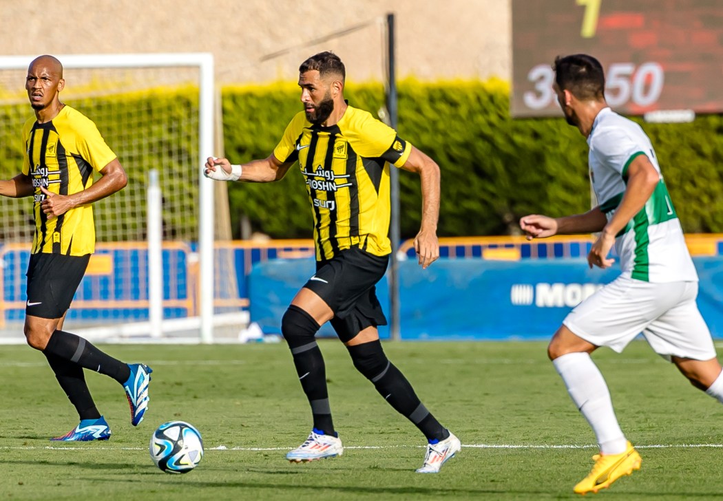 Karim Benzema con su equipo Al-Ittihad se enfrentó al el Elche CF el pasado sábado en el Estadi Olímpic Cano, con victoria franjiverde por 0-2. El primer partido en España del delantero francés tras su marcha a la liga de Arabia Saudí levantó una gran expectación y se agotaron las 2.000 entradas para ver en directo al ex jugador del Real Madrid y Balón de Oro en 2022. Este encuentro supuso el estreno de Laurent Blanc como entrenador del Al-Ittihad.