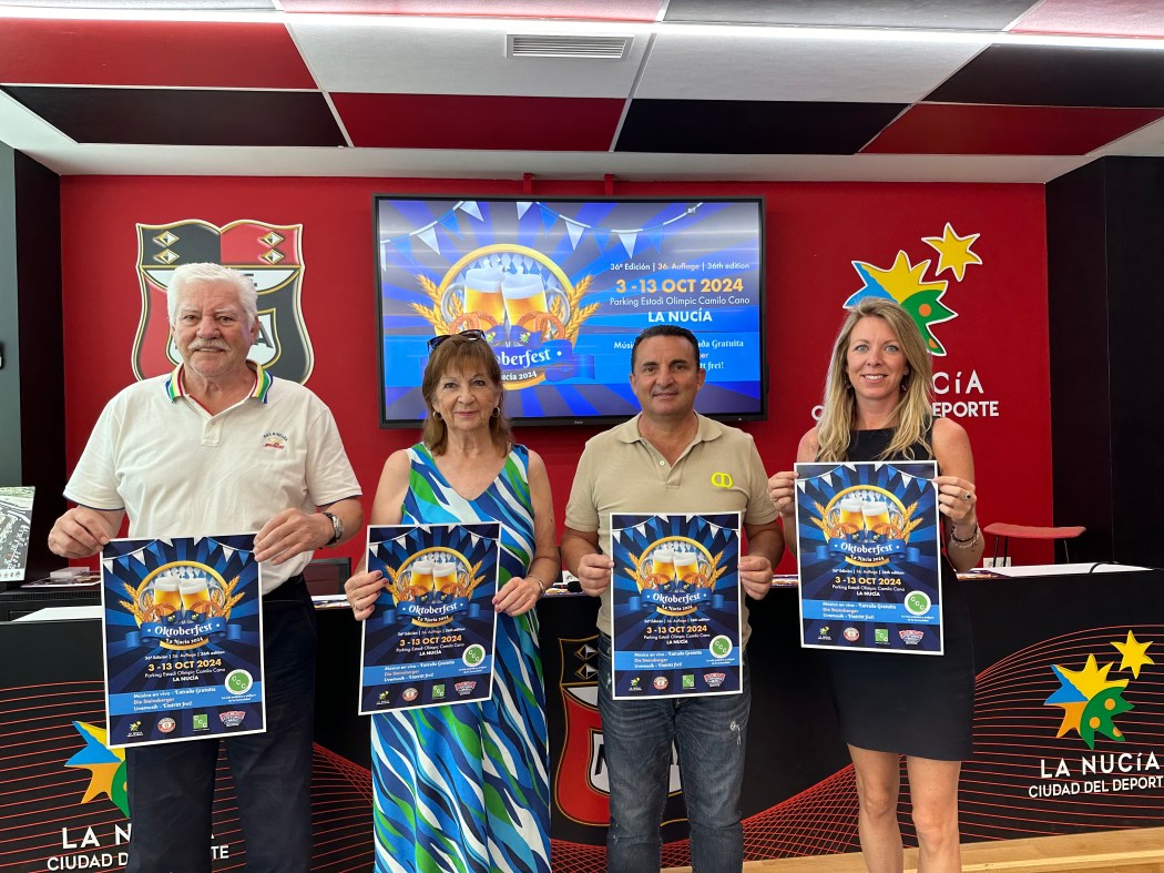 En la rueda de prensa sobre la “Oktoberfest 2024” de La Nucía participaron Gabriele Schäfer, pta. Asociación CCC, Dieter Jennrich, responsable de comunicación Asociación CCC, Jessica Gommans, concejala de Residentes Internacionales de La Nucía y Bernabé Cano, alcalde de La Nucía.