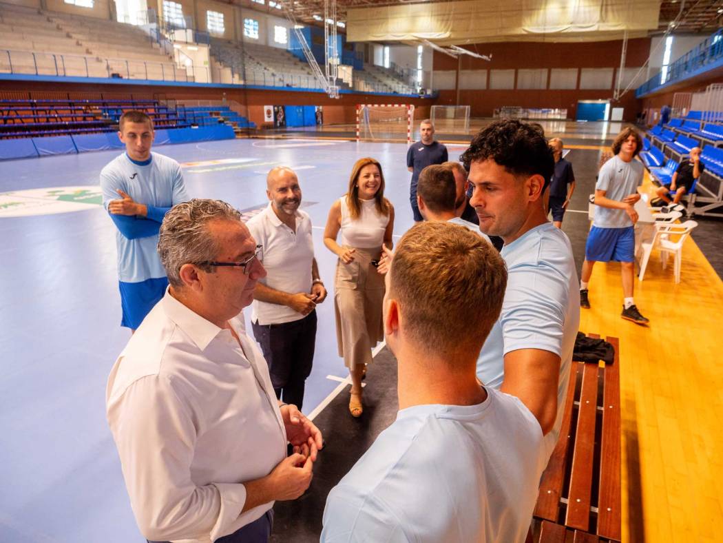 El alcalde de Benidorm, Toni Pérez, y el concejal de Deportes, Javier Jordá, junto a otros miembros de la corporación, han acudido a primera hora al Palau para saludar a la plantilla que, por segundo año, dirigirá Sergio Carballeria y su equipo técnico y que preside Jacobo Balongo.