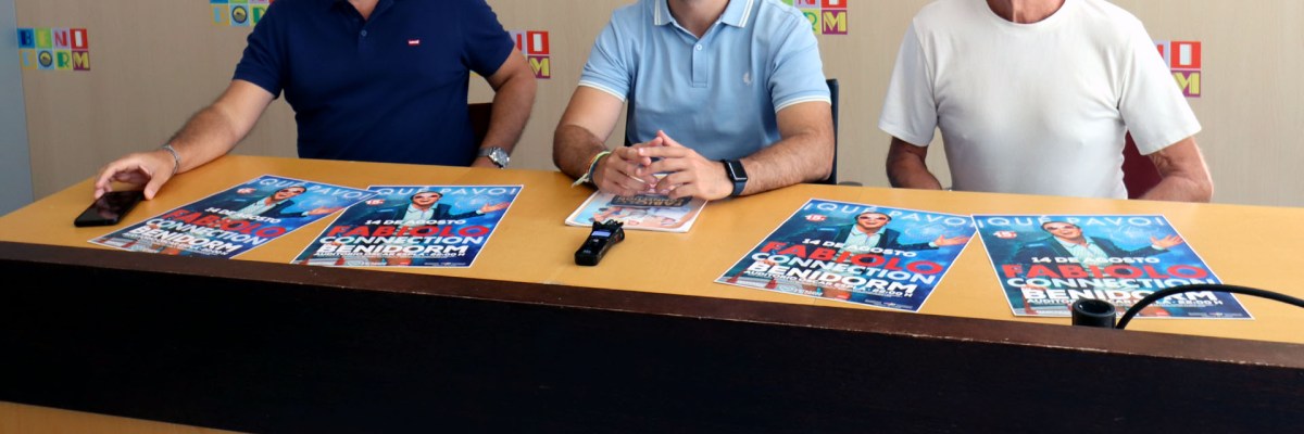 El auditorio Óscar Esplá del Parque de l’Aigüera de Benidorm acogerá el próximo 14 de agosto, a las 22 horas, una función cargada de humor y que llega de la mano del actor y humorista Rafa Maza, junto a la compañía Mascarat Producciones. La función, con el título ‘Fabiolo Connection. Match to de future’, ha sido presentada hoy en rueda de prensa por el concejal de Cultura del Ayuntamiento de Benidorm, Jaime Jesús Pérez, y los responsables de esta productora, Miguel Ángel Fernández y Manuel Troncoso, que han anunciado que las entradas ya están a la venta a un precio de 15 euros más gastos de gestión en www.entradasatualcance.com así como en tres puntos de venta físicos de Benidorm: Librería Ulises, Prensa La Cala y Excursiones Benidorm.